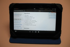 One of my favorite uses may very well be in the kitchen. Using the stand, I can display a recipe from allrecipes.com or one of the other sites I visit very often, set the little Fire out of the way on the counter, and refer to the displayed recipe as needed. I’ve done that several times already.