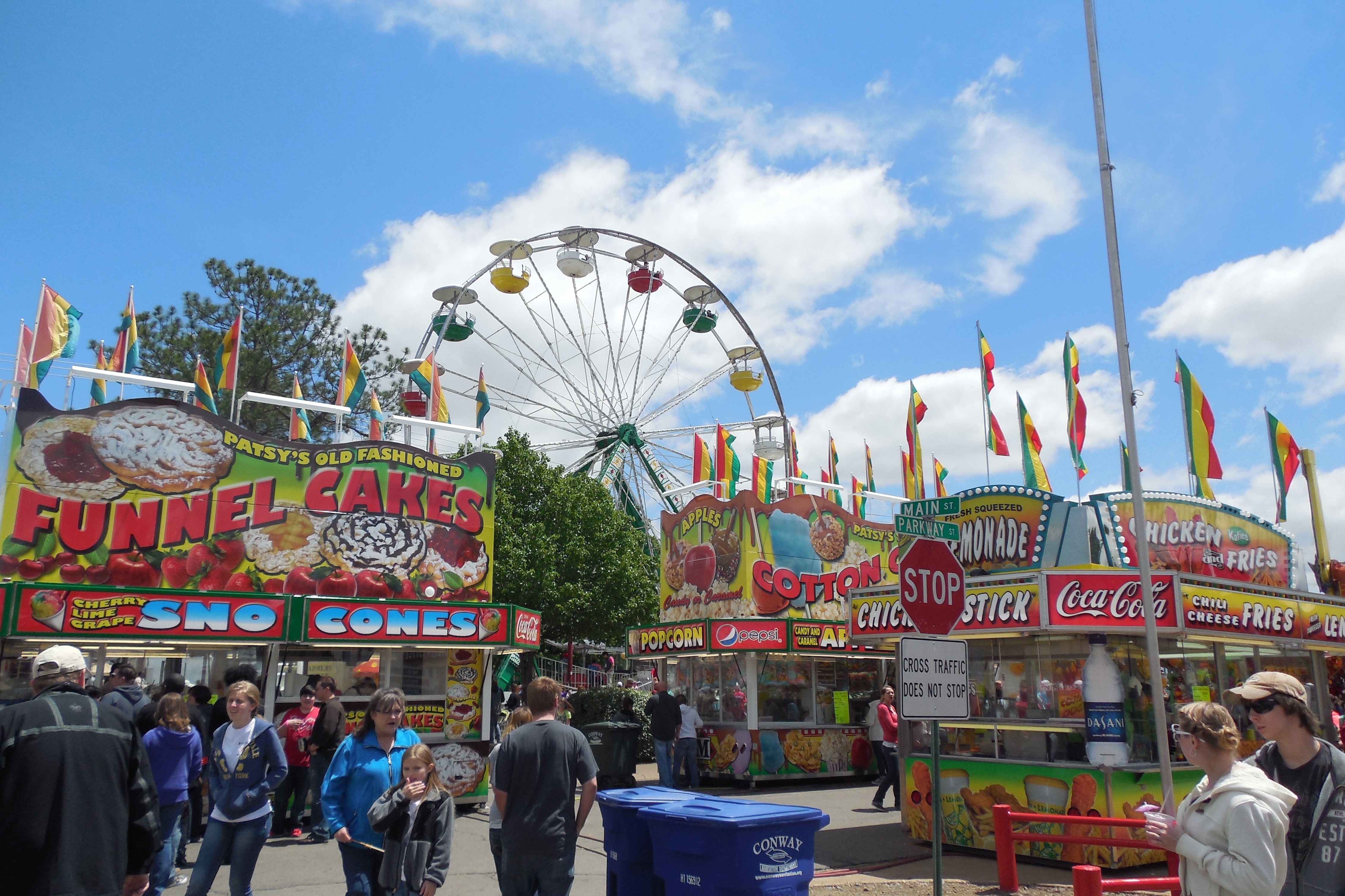 After an unseasonably cold, wet start to May, the sun made an appearance yesterday and the temperature warmed enough for a light sweater to suffice outdoors. My husband and I were unable to resist making the 25-mile drive to Conway, Arkansas to peek in on the 32nd annual Toad Suck Daze festival. A free-admission event that has raised over a million dollars for local education projects, Toad Suck Daze is a three-day festival offering carnival rides and games, music and other entertainment, arts and crafts and other wares for sale in booths, lots and lots of food vendors — and the famous toad races.